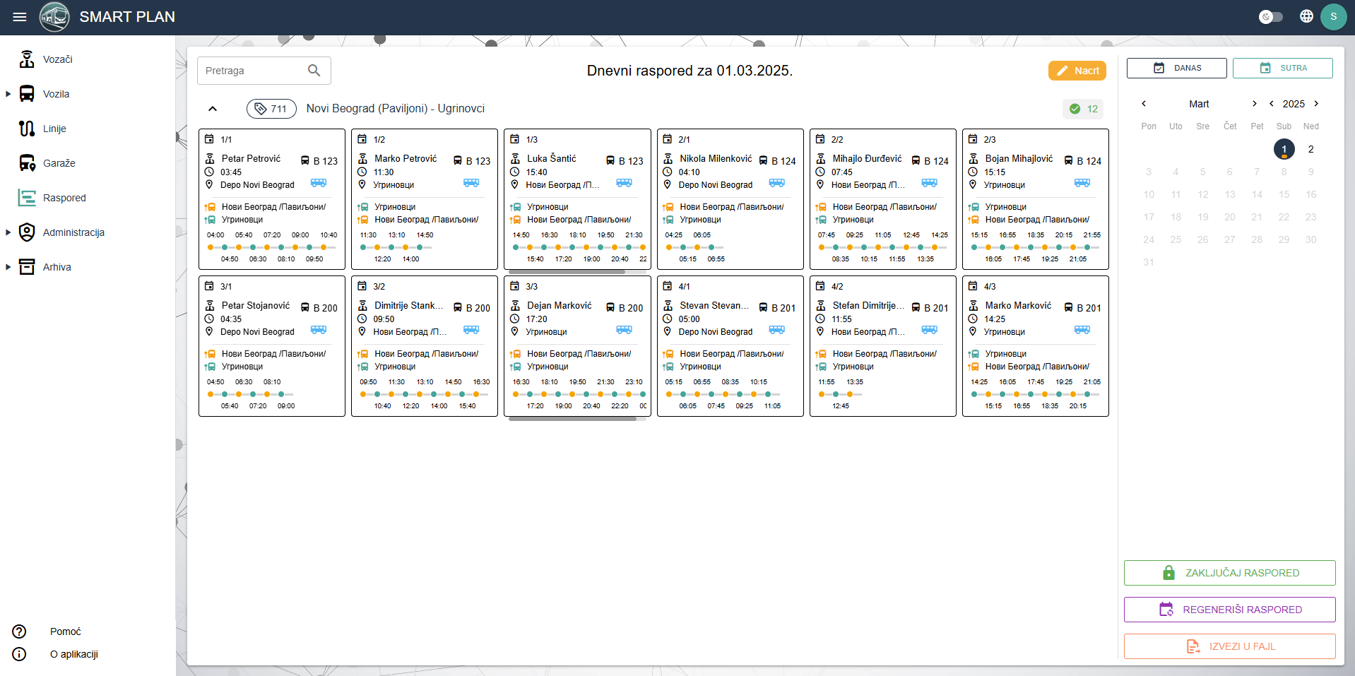 (vozila – vozači – linije)